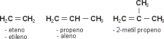 A figura mostra dois tipos de propenos existentes e que apesar de os dois serem alcenos com 3 carbonos, existe outro fator que acaba por torná-los diferentes: o primeiro tem cadeia química linear, o outro tem cadeia ramificada. As questões não param por ai, existem ainda por exemplo, "tipos" de butenos, que apesar de terem todos 4 átomos de carbono em cadeia linear ou não, as duplas ligações nesses, em alguns, aparecem no primeiro átomo de carbono, em outros aparecem no segundo.